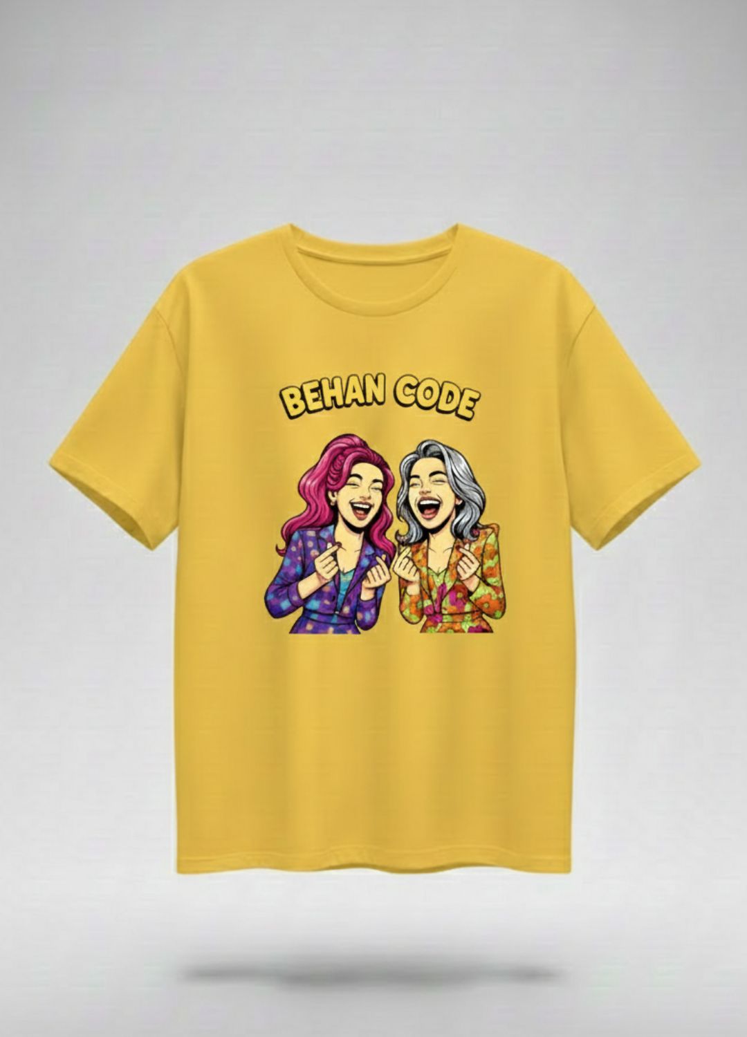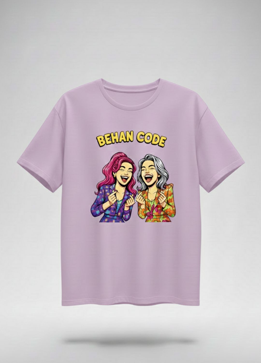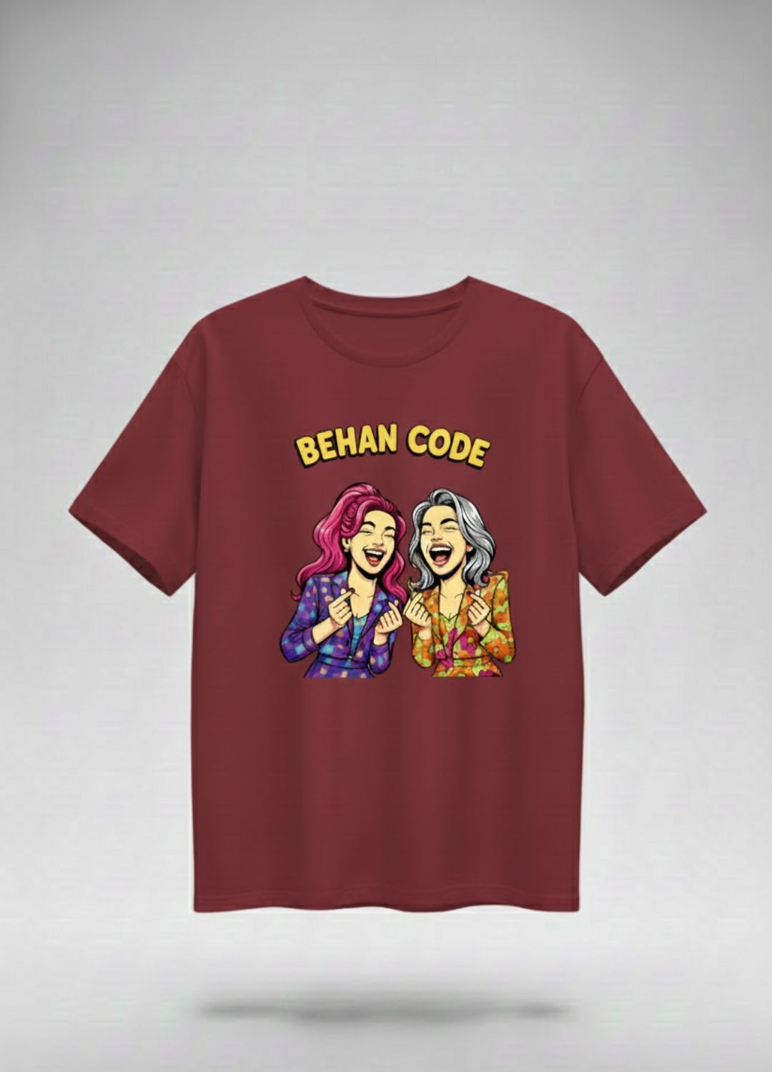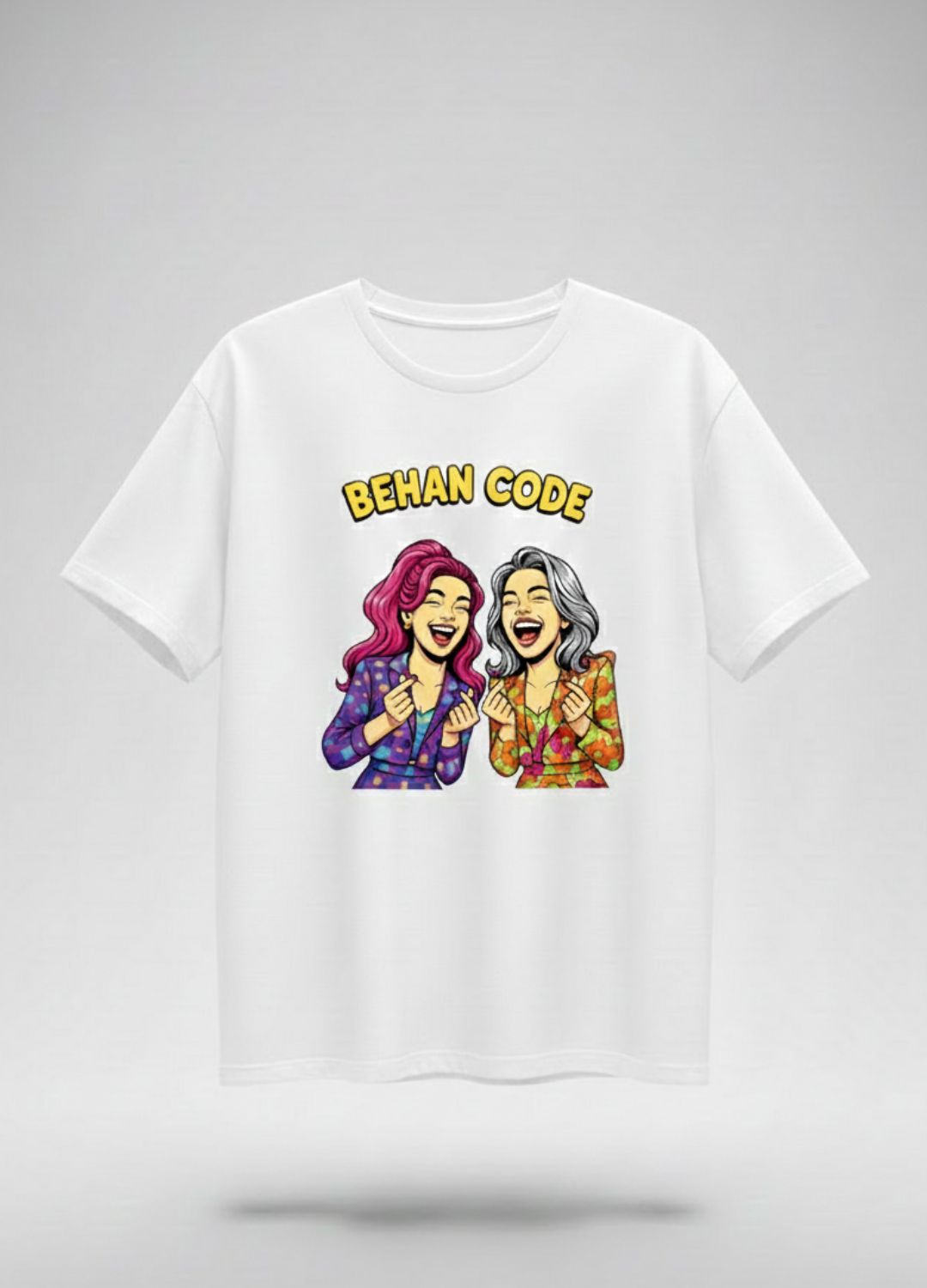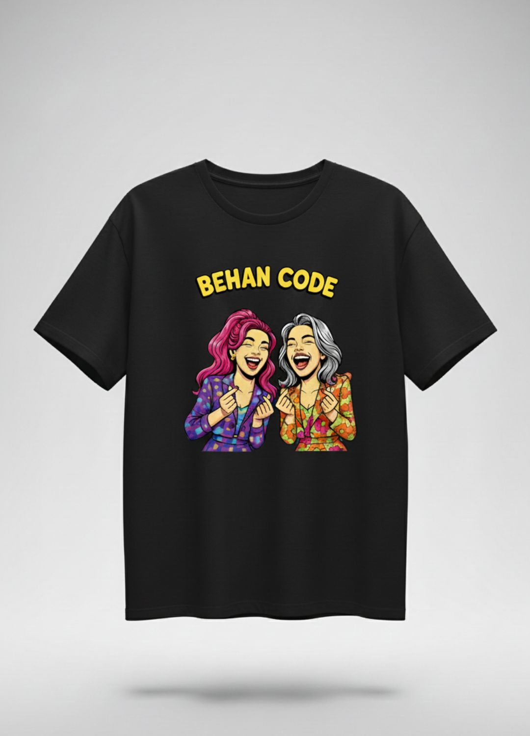 Add a playful twist to your wardrobe with the Behan Code Graphic T-Shirt. Designed to celebrate the unbreakable bond of sisters and best friends, this tee blends comfort, quality, and personality.