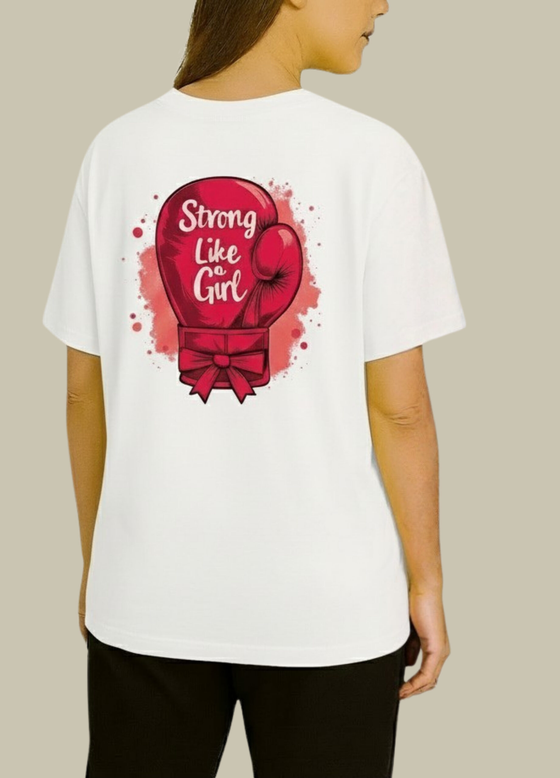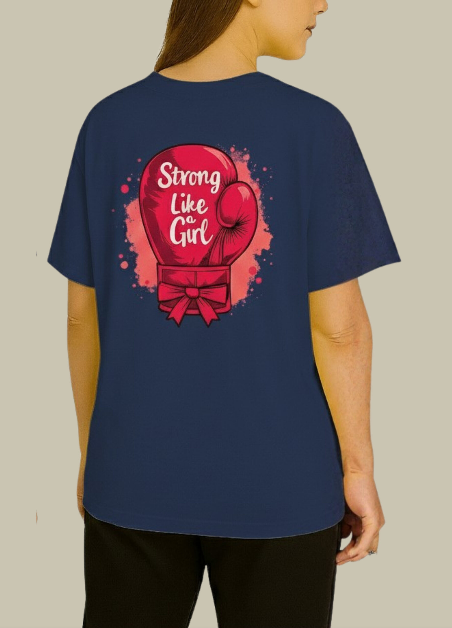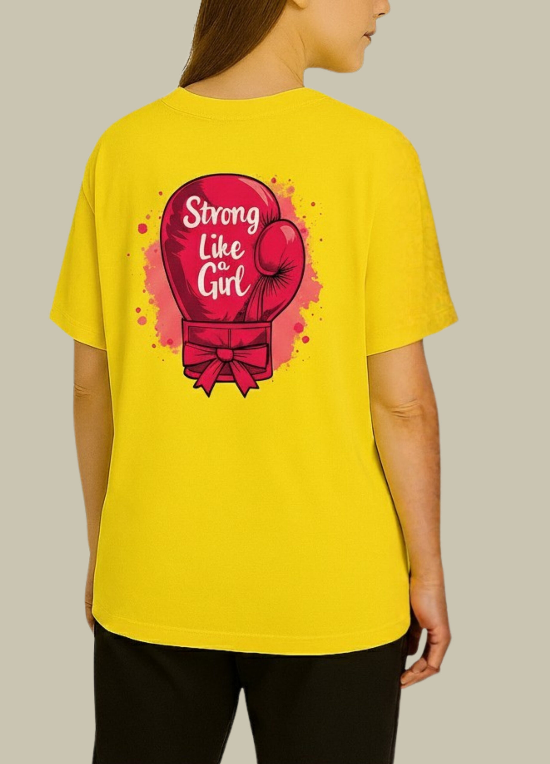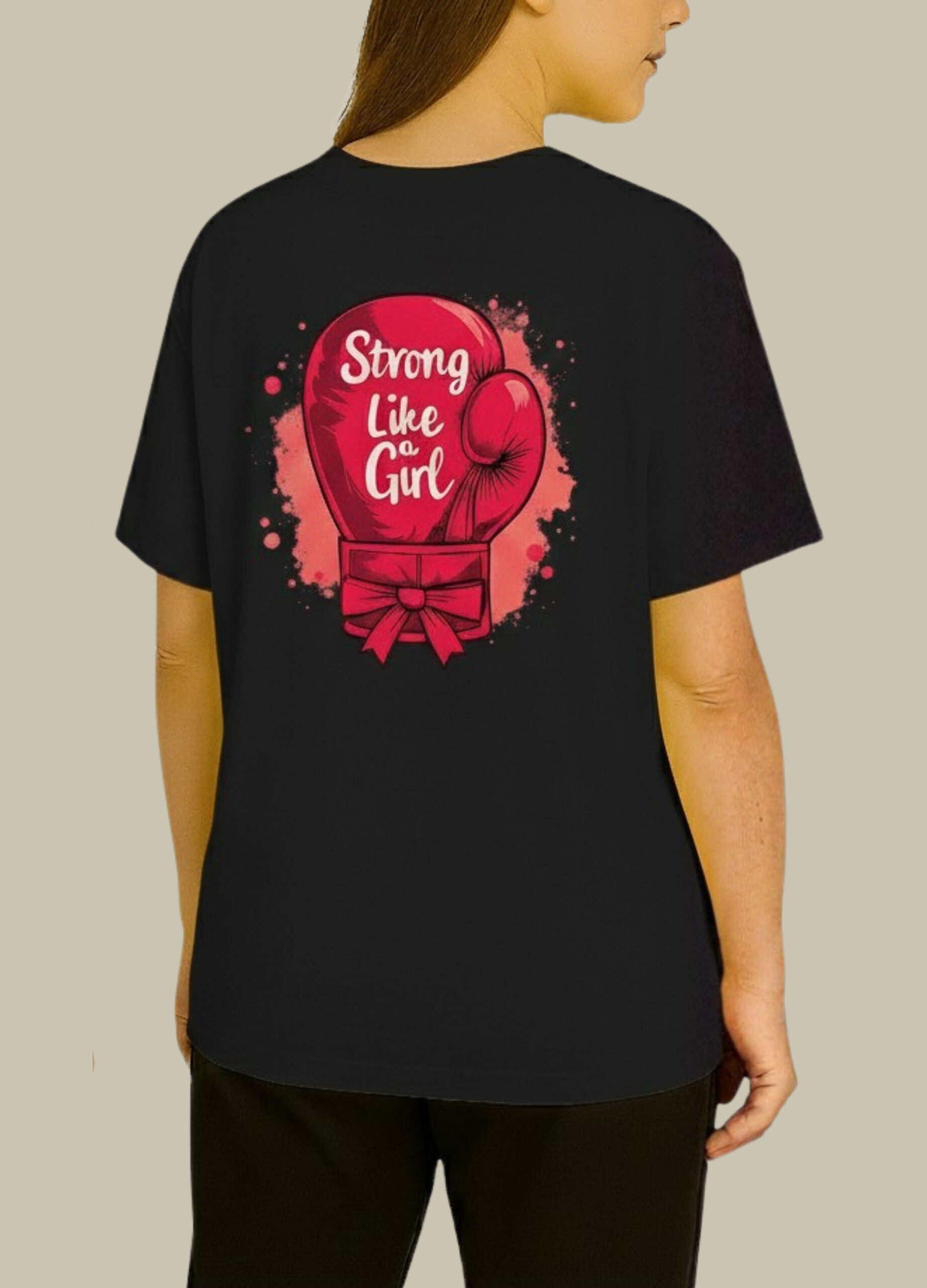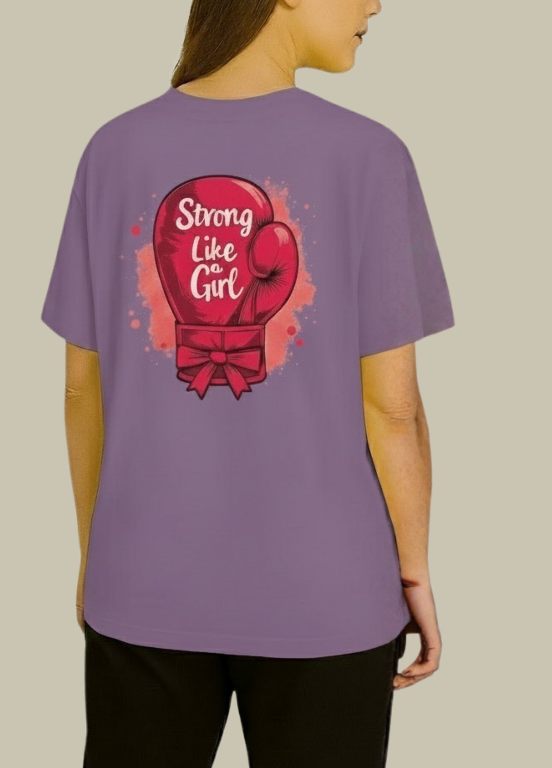 The Strong Like a Girl Graphic T-Shirt is designed to inspire confidence and empowerment every time you wear it. Featuring a bold boxing-glove illustration on the back and a subtle heart detail on the front, this tee makes a strong statement without compromising on comfort.