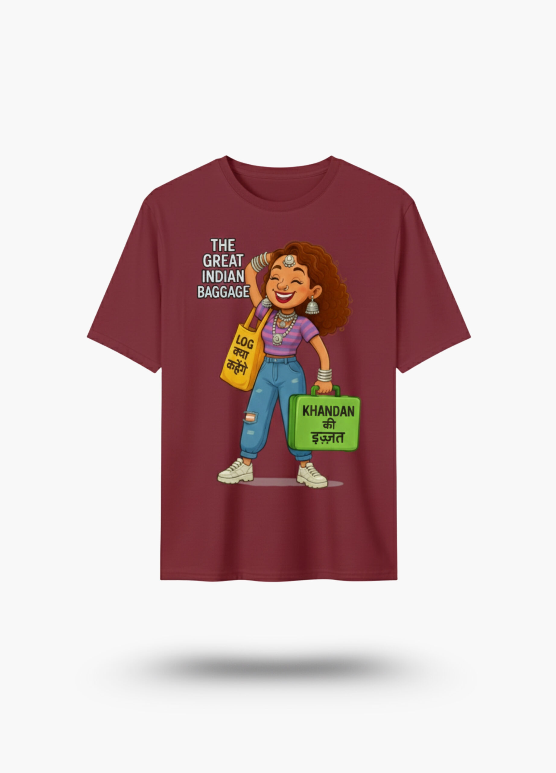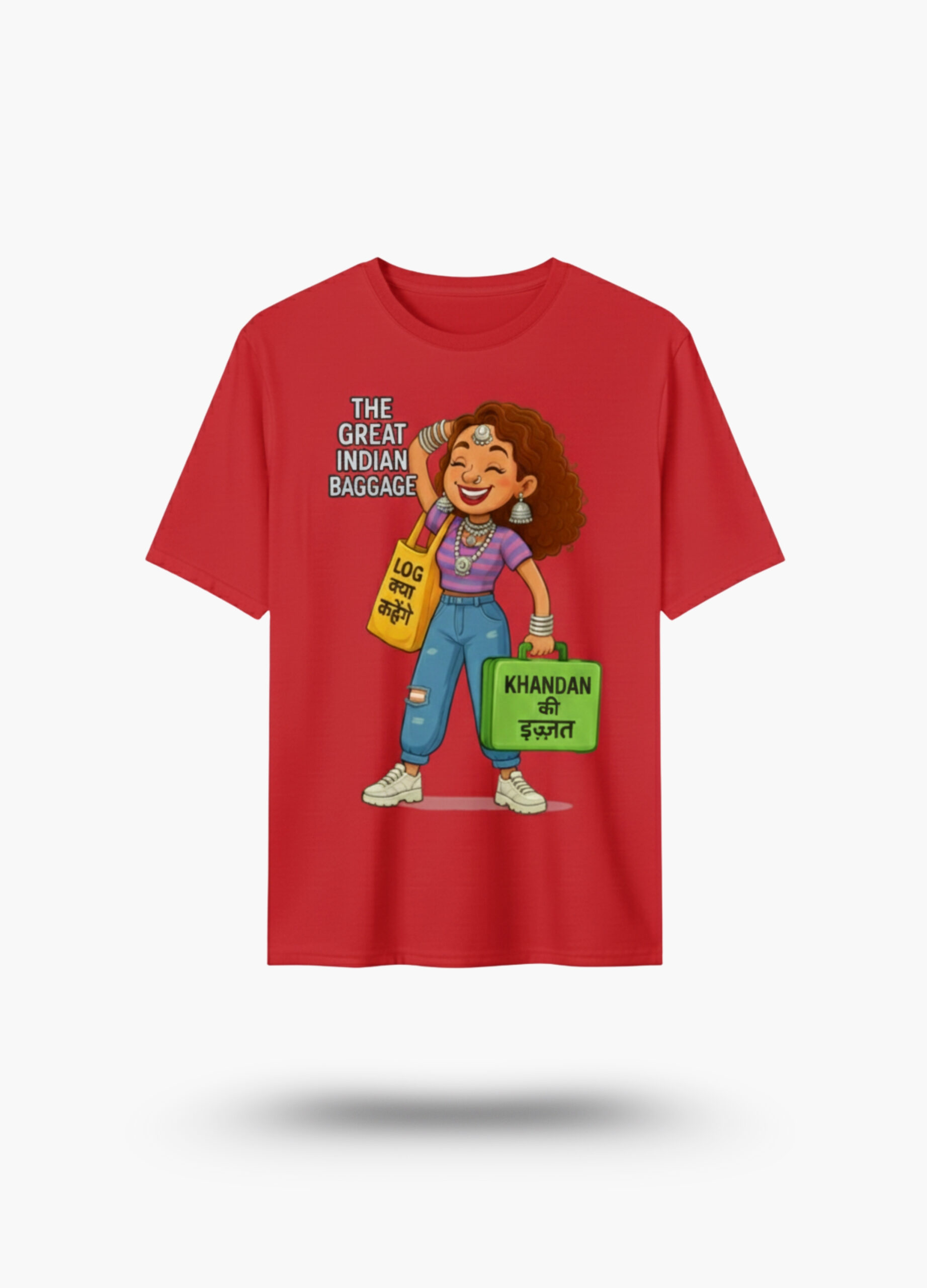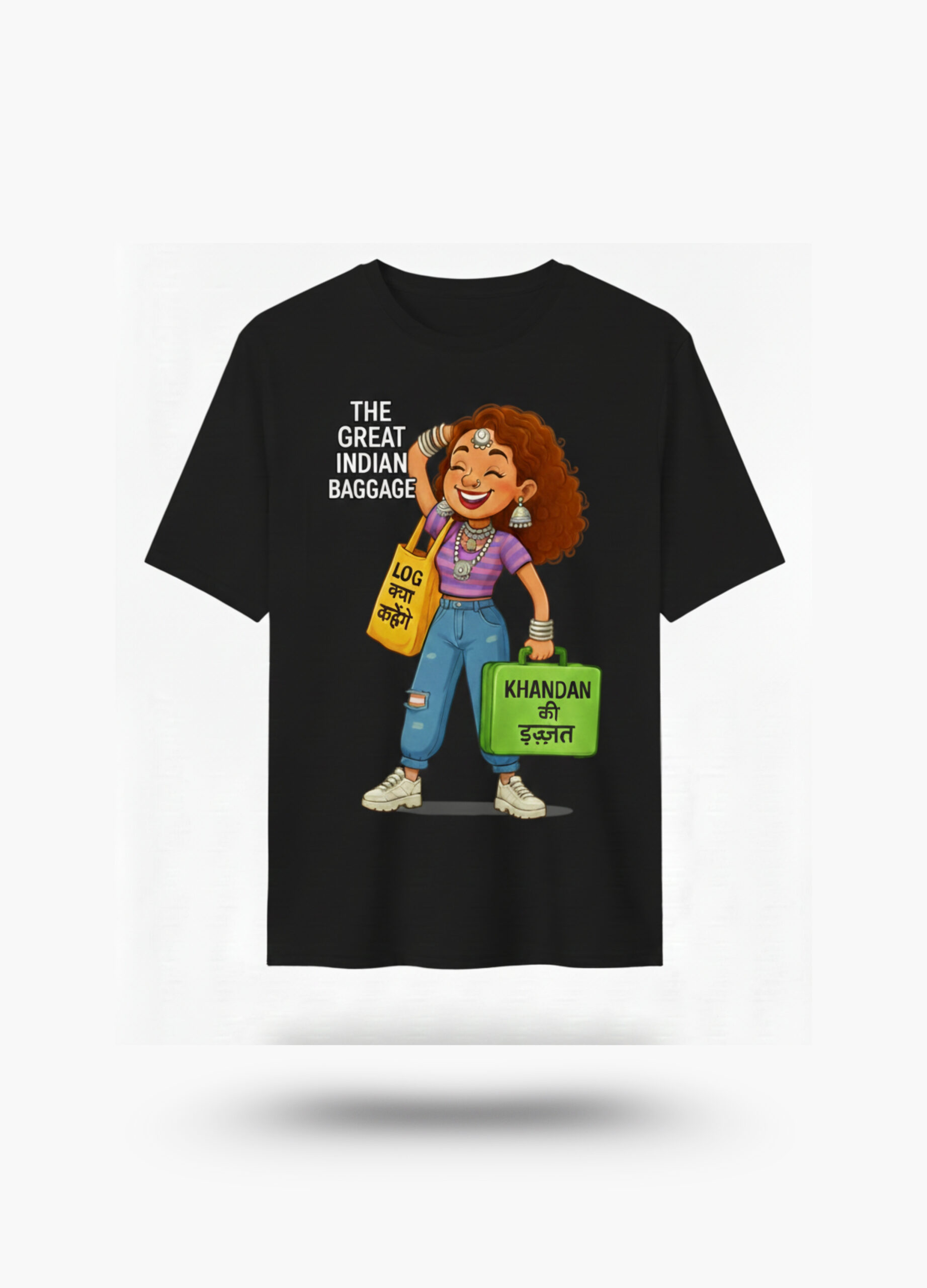 The Great Indian Baggage T-Shirt blends humor, culture, and comfort into one standout graphic tee.