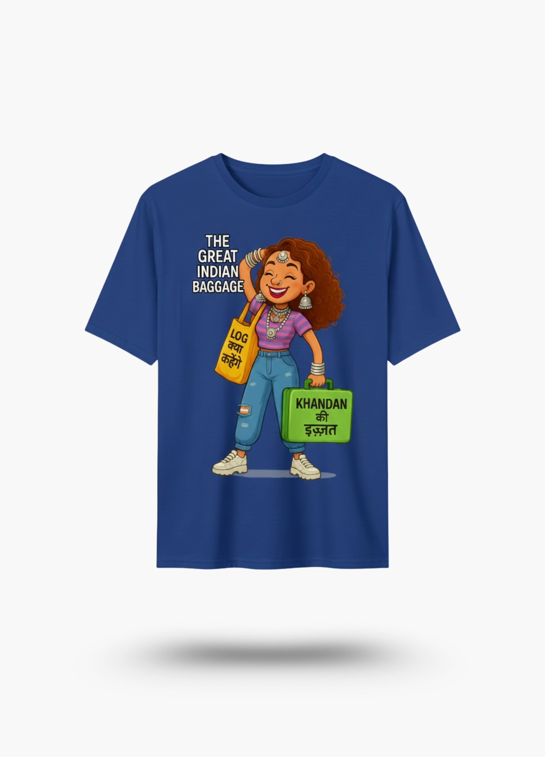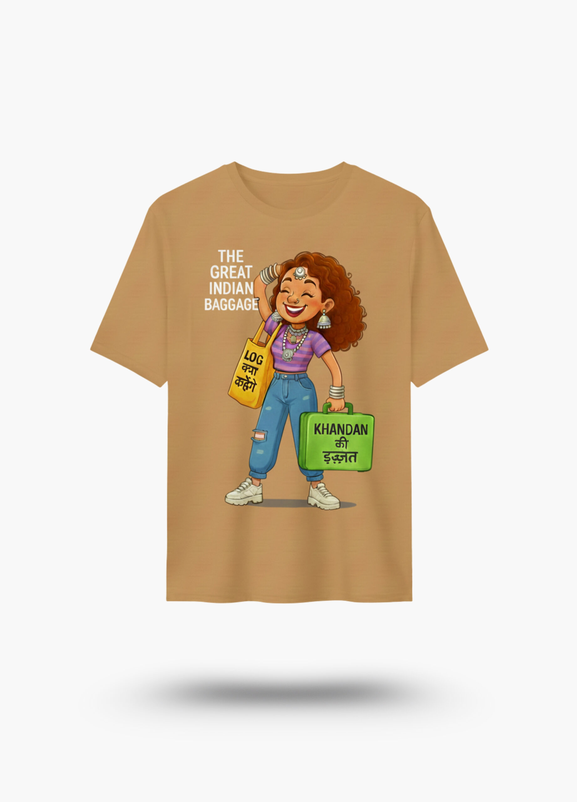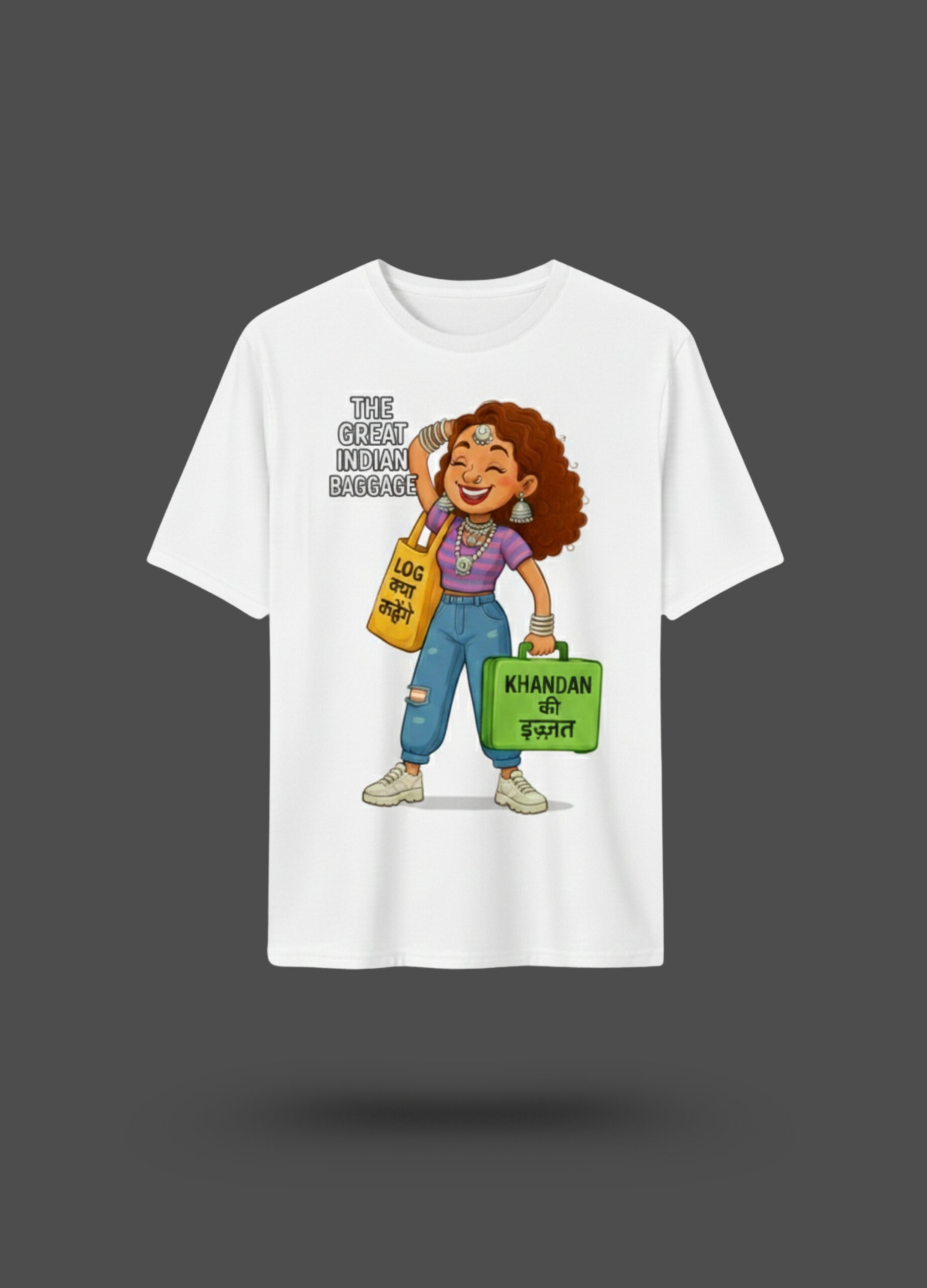 The Great Indian Baggage T-Shirt blends humor, culture, and comfort into one standout graphic tee.